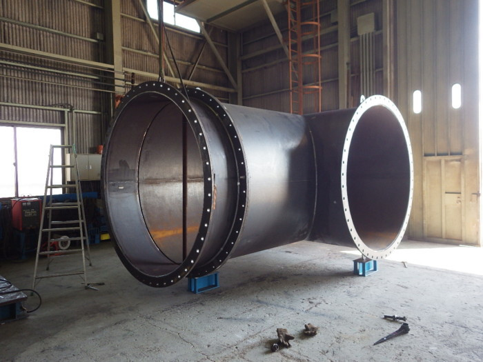 株式会社清水工業では、上下水道管や水管橋、プラント配管をはじめ、シュート・フレーム、ケーシング部品、金属看板など、多様な製缶・溶接加工を手掛けてきました 一つひとつの製品は、用途や環境に応じた素材選定と熟練の技術、さらに精密な機械加工を組み合わせることで完成しています。ここでは、その実績の一部をご紹介いたします。